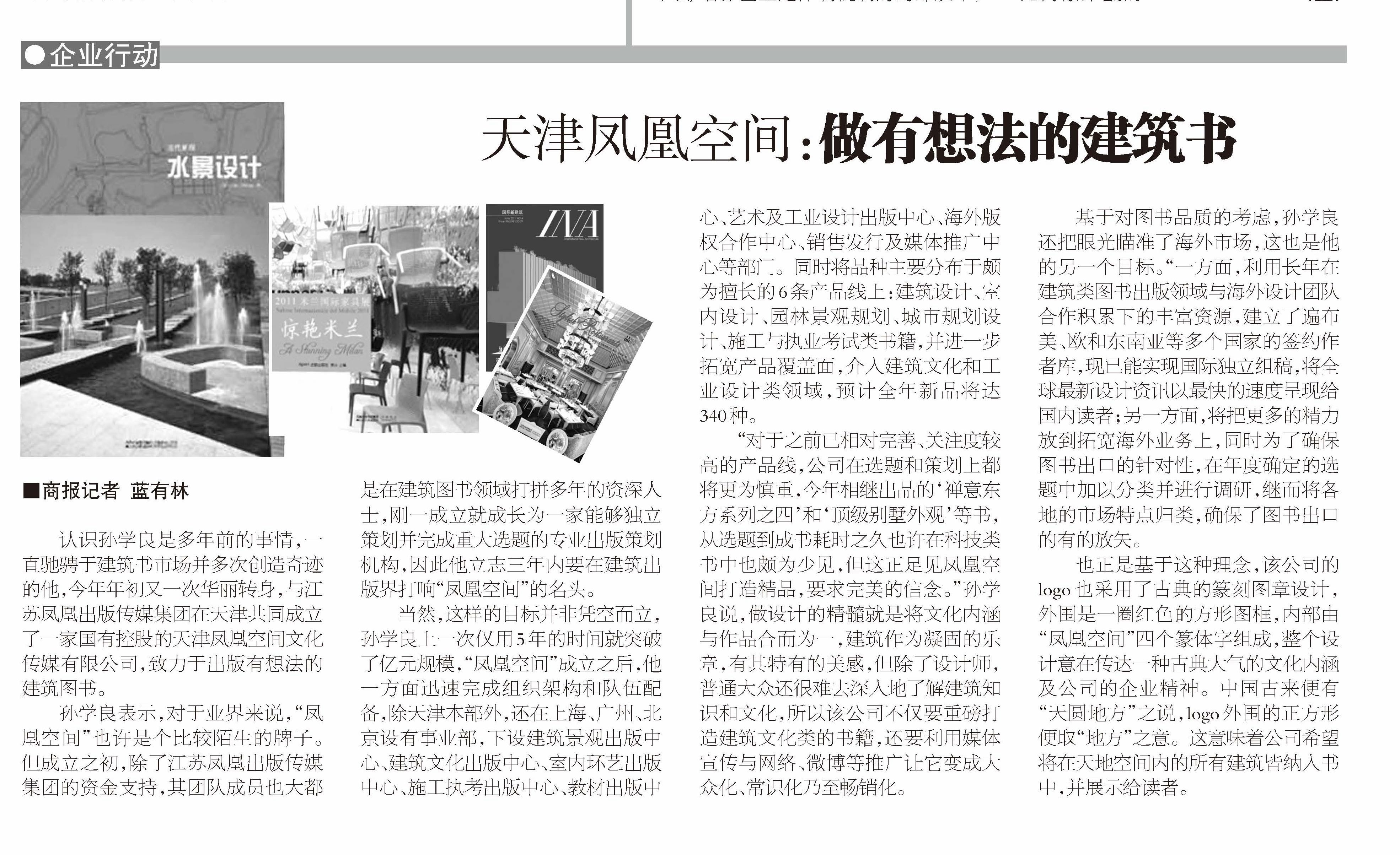 認(rèn)識孫學(xué)良是多年前的事情,一直馳騁于建筑書市場并多次創(chuàng)造奇跡的他,今年年初又一次華麗轉(zhuǎn)身,與江蘇鳳凰出版?zhèn)髅郊瘓F在天津共同成立了一家國有控股的天津鳳凰空間文化傳媒有限公司,致力于出版有想法的建筑圖書。