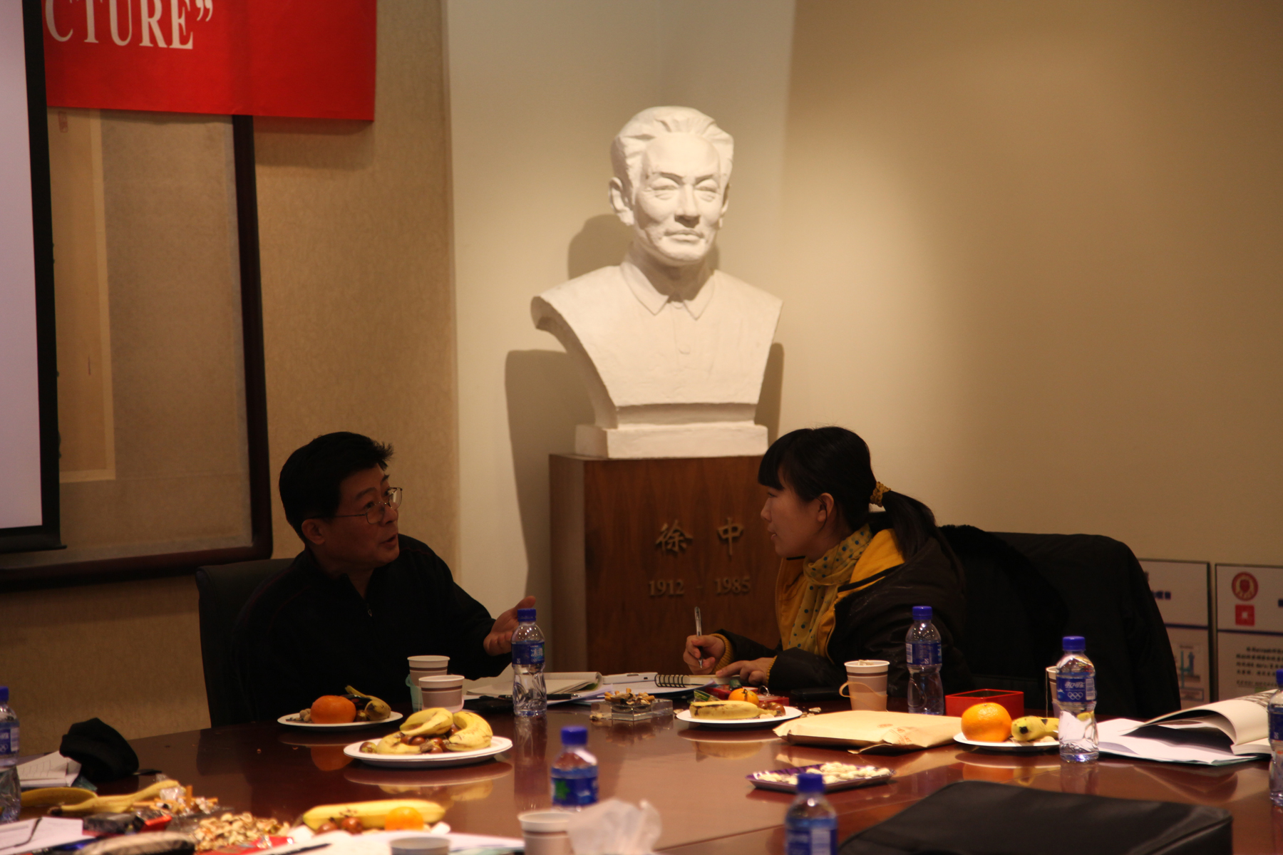 天津大學(xué)建筑學(xué)院藝術(shù)設(shè)計系系主任董雅與年輕教師親切交流