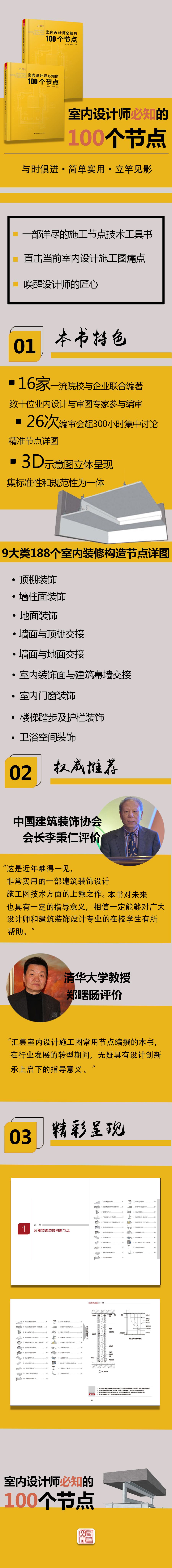 在中國經(jīng)濟(jì)發(fā)展進(jìn)入新常態(tài),建筑裝飾設(shè)計(jì)領(lǐng)域轉(zhuǎn)型升級的大背景下,由北京市建筑裝飾協(xié)會、北京建筑裝飾設(shè)計(jì)創(chuàng)新產(chǎn)業(yè)聯(lián)盟及北京超限建筑科技發(fā)展有限公司聯(lián)合策劃編寫的《室內(nèi)設(shè)計(jì)師必知的100 個(gè)節(jié)點(diǎn)》一書的問世如三月的一縷春風(fēng)迎面撲來。