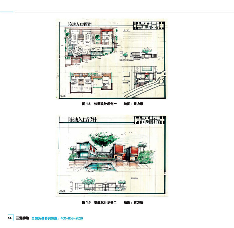 該書主要特點如下: 1.題目類型豐富、全面,避免讀者在尋找快題題目上浪費時間和精力; 2.快題方案量大而優(yōu)秀,為讀者練習快題提供了范本; 3.評語精辟而簡潔,一針見血地指出各方案的優(yōu)缺點,避免讀者盲目模仿錯誤的方案,也使讀者在日后的設計中能避免犯類似的錯誤。