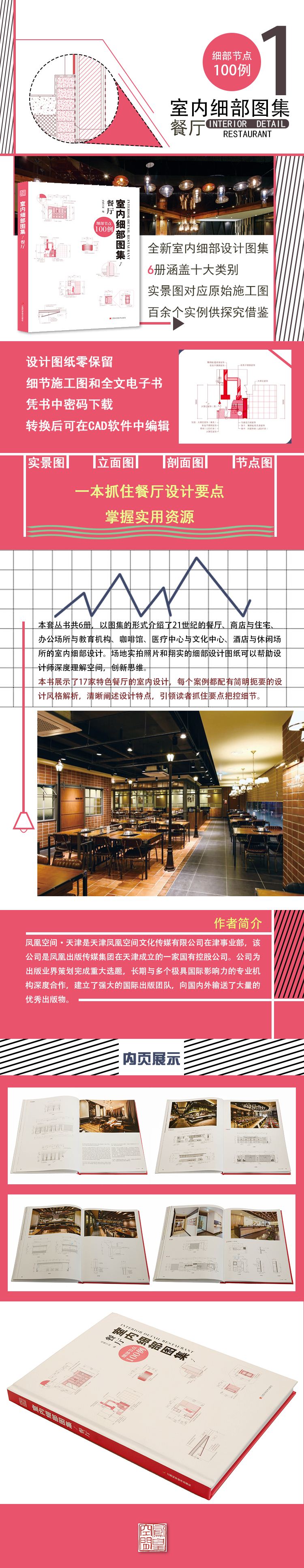 書中施工圖可憑書內(nèi)所附的密碼在鳳凰空間官網(wǎng)免費下載,并可經(jīng)過簡單轉(zhuǎn)換,便可在CAD中打開并編輯。為讀者們仔細(xì)探究細(xì)節(jié)和借鑒案例內(nèi)容提供了便利。