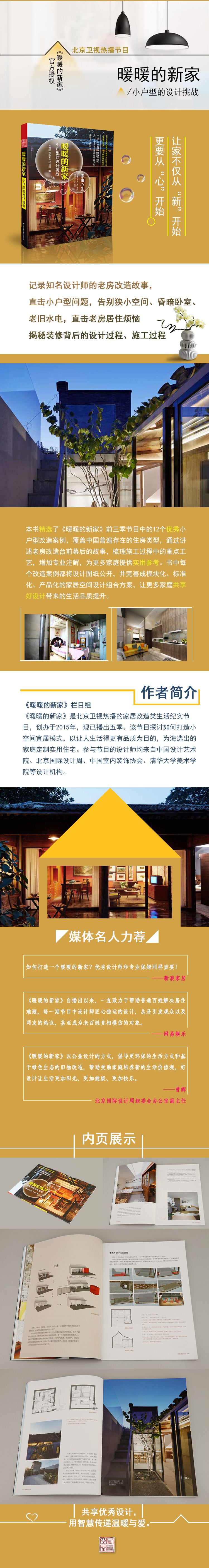 本書呈現(xiàn)了北京衛(wèi)視大型家裝類改造節(jié)目《暖暖的新家》欄目第三季的精彩內(nèi)容,每一期內(nèi)容都由各期的編劇講述12個家庭在裝修改造中發(fā)生的溫暖人心的故事以及改造施工的細節(jié)。這十二期內(nèi)容分別是,北京遇上米蘭、充滿回憶的家、零通風零采光的家、珠峰腳下的家、讓媽媽回家、我家有棵樹、編織大叔的幸福之家、住在柜子里的家、零家具跨國之家、胡同里的我們仨、毛猴之家、時光天梯。