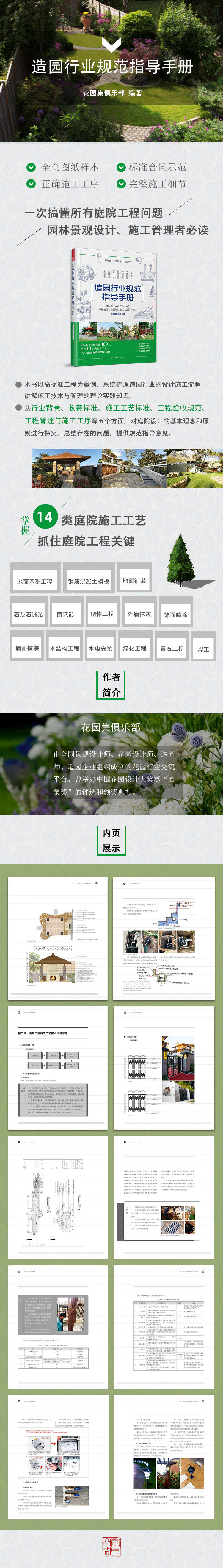 《造園行業(yè)規(guī)范指導(dǎo)手冊(cè)》是以高標(biāo)準(zhǔn)工程定位,為庭院量身而作,提供專業(yè)的規(guī)范意見(jiàn),講解庭院工程的技巧施工。值得庭院從業(yè)人員人手一本!