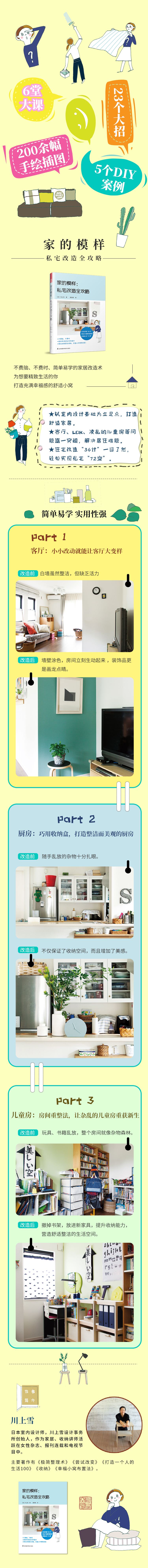 本書分為“首先,讓我們從改造客廳入手吧 ”“ 讓被生活痕跡淹沒的‘LDK’重新散發(fā)光彩”“ 對(duì)亂七八糟的‘那個(gè)房間’出手吧”“DIY家具的制作方法”四個(gè)章節(jié),以手繪漫畫的形式解說詳細(xì)闡述了廚房、客廳、臥室、衛(wèi)生間、玄關(guān)等收納整理技巧和室內(nèi)設(shè)計(jì)創(chuàng)意,消除家中乏味的生活痕跡,讓改造后的家重新煥發(fā)光彩。