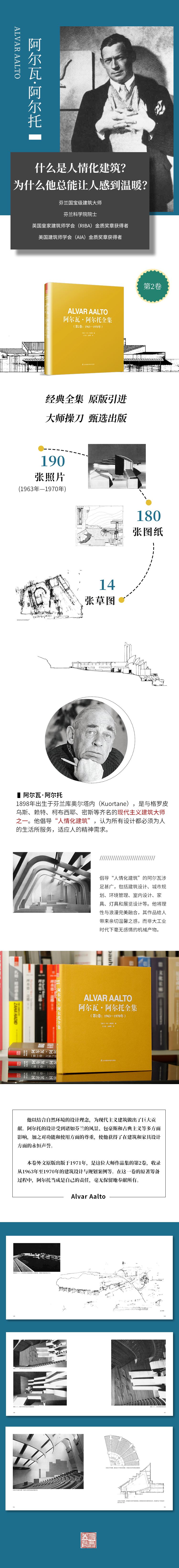 本卷外文原版出版于1971年,是這位大師作品集的第2卷,收錄從1963—1970年的建筑設(shè)計(jì)與規(guī)劃案例等,包括文化中心、劇院、博物館、圖書(shū)館和教堂等。在這一卷的原著籌備過(guò)程中,阿爾托當(dāng)成是自己的責(zé)任,毫無(wú)保留地奉獻(xiàn)所有。本書(shū)沒(méi)有將阿爾托的建筑設(shè)計(jì)歸類(lèi)于某種風(fēng)格或流派,也沒(méi)有對(duì)他的作品小題大做,只是將他的建筑設(shè)計(jì)忠實(shí)、客觀、簡(jiǎn)要地展示與陳述給讀者。