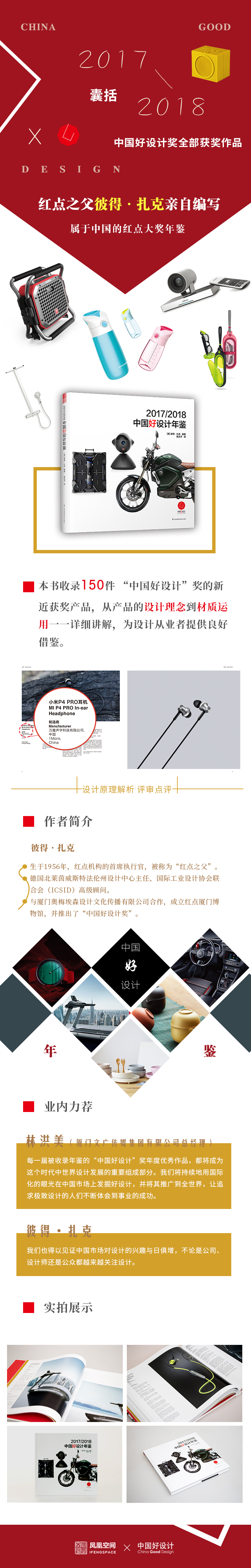 紅點之父彼得·扎克親自編寫,屬于中國的紅點大獎,通過選擇中國市場上最好的設(shè)計產(chǎn)品并為之頒發(fā)“中國好設(shè)計”獎項,促進好設(shè)計在中國的進一步發(fā)展,書中為這些絕佳的設(shè)計作品,并配有詳細的文字介紹和圖片展示,這些獲獎產(chǎn)品反映了行業(yè)和客戶的共同需求,能為廣大的設(shè)計從業(yè)者提供良好的借鑒。除此之外,評審團為獲獎作品撰寫了簡短的獲獎詞,這些獲獎詞能夠幫助讀者了解評審團在評定產(chǎn)品時的角度,以及每個設(shè)計作品的獨特優(yōu)異之處。