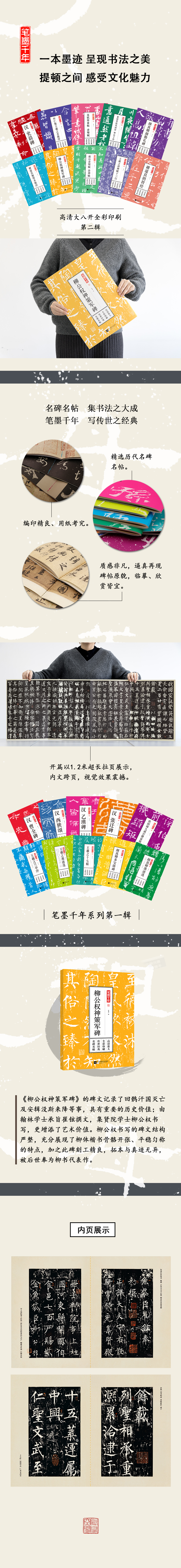 2、本系列精選歷代名碑名帖40余種,大八開全彩印刷、高清放大、編印精良,逼真再現(xiàn)碑帖原貌。