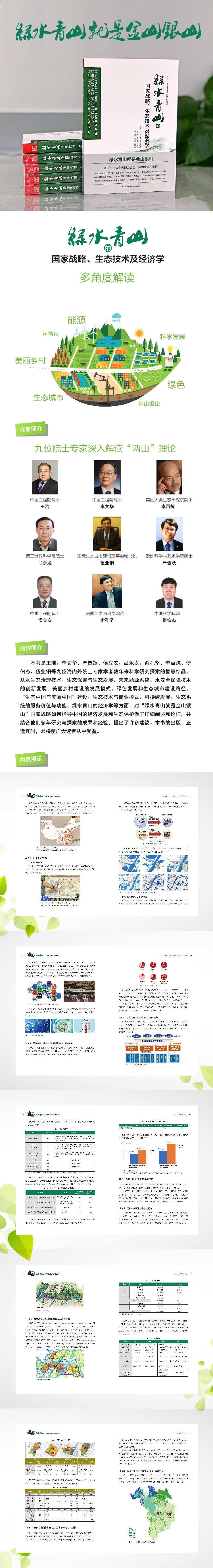 本書是王浩、李文華、嚴(yán)晉躍、侯立安、呂永龍、俞孔堅(jiān)、李百煉、傅伯杰、伍業(yè)鋼九位海內(nèi)外院士專家學(xué)者數(shù)年來科學(xué)研究探索的智慧結(jié)晶,從水生態(tài)治理技術(shù)、生態(tài)保育與生態(tài)發(fā)展、未來能源系統(tǒng)、水安全保障技術(shù)的創(chuàng)新發(fā)展、美麗鄉(xiāng)村建設(shè)的發(fā)展模式、綠色發(fā)展和生態(tài)城市建設(shè)路徑、“生態(tài)中國與美麗中國”建設(shè)、生態(tài)技術(shù)與商業(yè)模式、可持續(xù)發(fā)展、生態(tài)系統(tǒng)的服務(wù)價(jià)值與功能、綠水青山的經(jīng)濟(jì)學(xué)等方面,對“綠水青山就是金山銀山”國家戰(zhàn)略如何指導(dǎo)中國的經(jīng)濟(jì)發(fā)展和生態(tài)保護(hù)做了詳細(xì)闡述和論證,并結(jié)合他們多年研究與探索的成果和經(jīng)驗(yàn),提出了許多建議。本書的出版,正逢其時(shí),必將使廣大讀者從中受益。