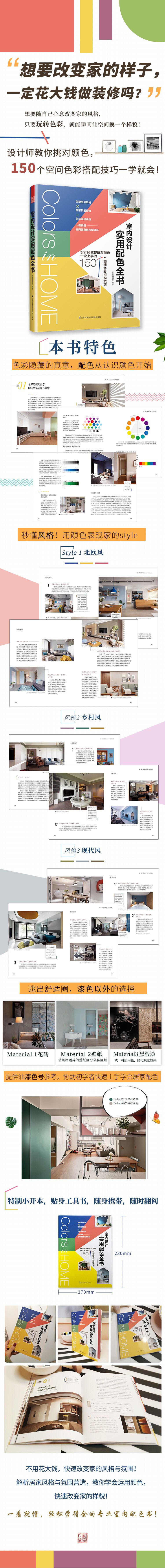 本書從基礎色彩知識講起,拓展到色彩與空間大小、氛圍及明暗的關系,通過詳細的理論知識,幫助讀者在進行室內設計師,快速將色彩運用到居家空間,營造出理想的居家空間氛圍。