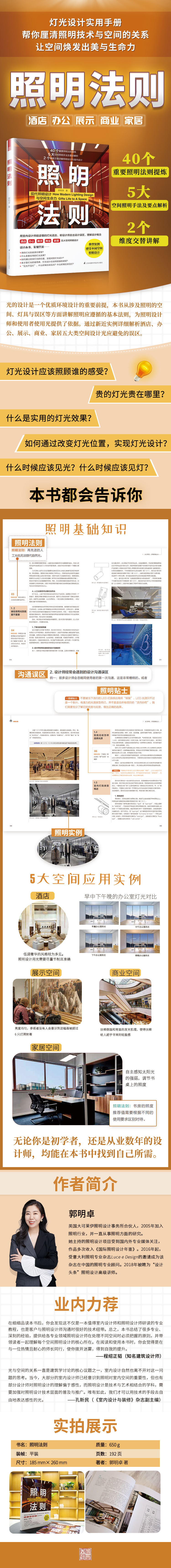 全書從涉及照明的空間、燈具與誤區(qū)全面介紹了照明應(yīng)遵循的基本法則,是室內(nèi)設(shè)計師、燈光設(shè)計師、有需求的業(yè)主都可以從中得到啟發(fā)與靈感的教科書。
