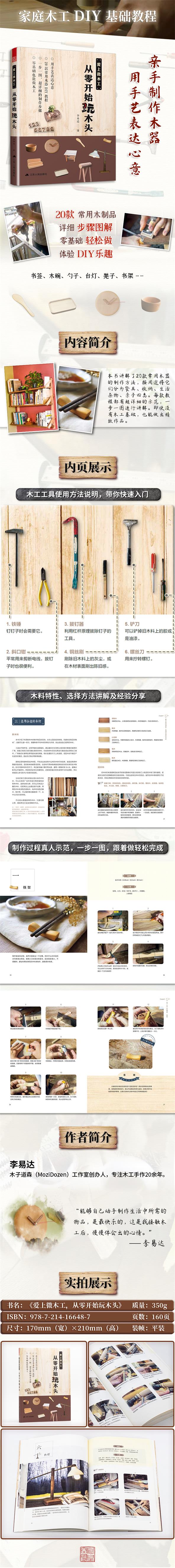 本書介紹了20款常用木器的制作方法和步驟,分為餐具類、收納類、生活雜物類、親子類四個品種,有簡單易做的書簽、筷架、小刺猬,有實用的層板架、勺子、凳子,有考驗?zāi)托牡哪就?、臺燈等等物品。每款木器都是一步一圖,有超詳細的圖文步驟講解,即使沒有木工基礎(chǔ),也能做出精致的木工作品。