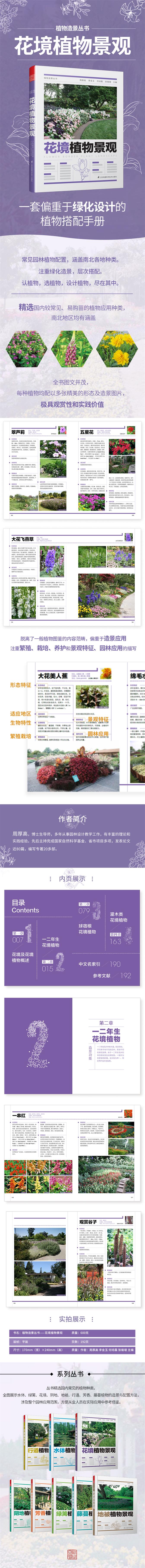 《花境植物景觀》根據(jù)花境植物的特性和景觀應(yīng)用進行闡述,分為一二年生花境植物、球宿根花境植物、灌木類花境植物,方便園林從業(yè)人員在實際應(yīng)用中學習參考。