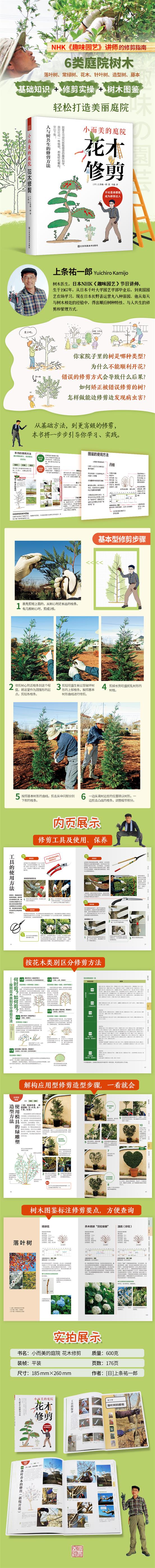 本書以面向普通園藝愛好者的花木修剪技巧為主要內(nèi)容,以實(shí)景圖片和趣味插畫展示花木修剪手法。全書共分為6章,分別介紹了落葉樹的常用修剪技法、常綠樹常用修剪技法、花木常用修剪技法、針葉樹常用修剪技法、造型樹修剪技巧及藤本植物的修剪方法。