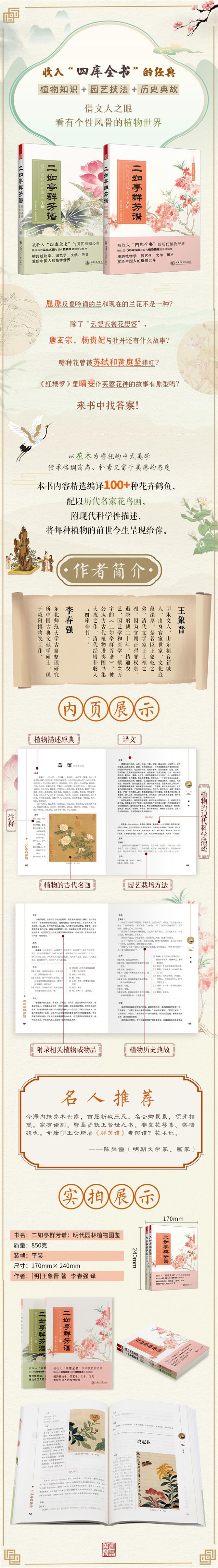 原書內(nèi)容精選編譯,配以種類準(zhǔn)確的歷代名家花鳥畫,并附現(xiàn)代科學(xué)性描述,使每一種植物跨越古今,呈現(xiàn)前世今生。