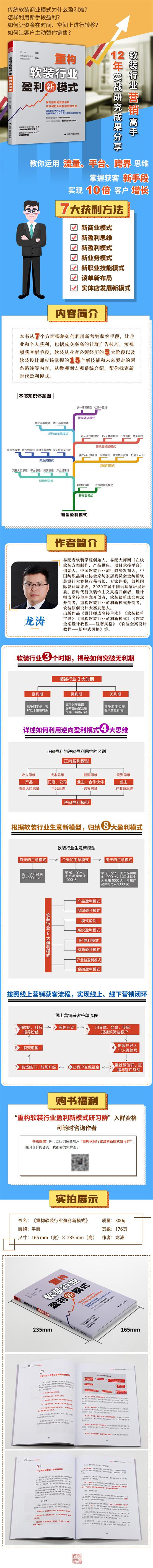 在書中,您將會看到傳統(tǒng)軟裝行業(yè)商業(yè)模式為什么盈利難,新時代企業(yè)必須具備的流量、平臺、跨界的思維,如何讓資金再時間、空間上進行轉(zhuǎn)移,如何讓客戶主動替您銷售,高成交率的微信廣告群發(fā)技巧,5G時代短視頻獲客新手段,軟裝從業(yè)者必須經(jīng)歷的5大階段,以及軟裝設(shè)計師應(yīng)該掌握的15個新技能和未來要走的兩條路線。