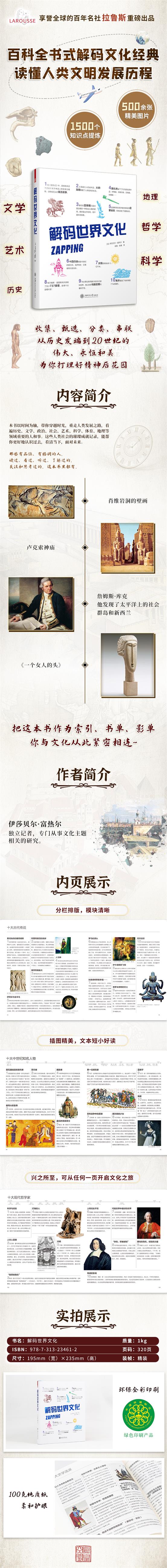 ● 本書是法國百年大社——拉魯斯的又一傾心力作,拉魯斯所開創(chuàng)的百科全書事業(yè)使其聞名于世。本書可謂一本有關(guān)世界文化的百科全書類著作。