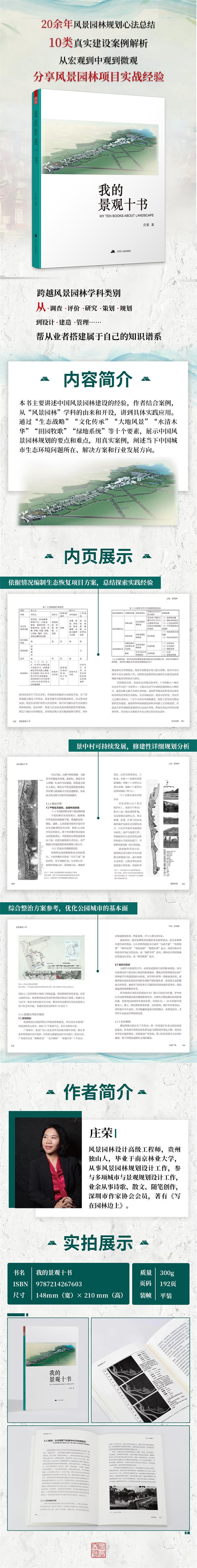《我的景觀十書》主要講述了作者對于中國風(fēng)景園林建設(shè)的一些經(jīng)驗,從不同角度出發(fā),結(jié)合具體案例,從“風(fēng)景園林”這一學(xué)科的由來和開設(shè),到具體的實踐應(yīng)用,一一詳細闡述。書中通過風(fēng)景園林的“生態(tài)戰(zhàn)略”“文化傳承”“大地風(fēng)景”“水清木華”“田園牧歌”“綠地系統(tǒng)”等十個要素,結(jié)合作者親身參與的實際案例,展示出中國風(fēng)景園林規(guī)劃的要點和難點,并結(jié)合實際案例,闡述當下我國城市生態(tài)環(huán)境的問題所在、解決方案和行業(yè)的發(fā)展方向。