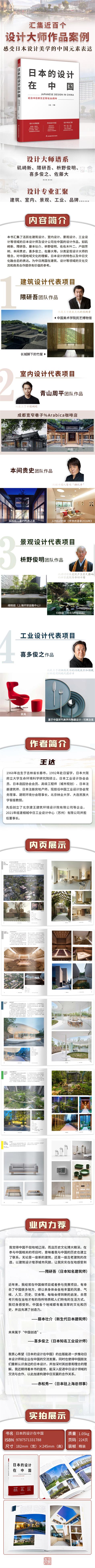 《日本的設(shè)計(jì)在中國(guó)》匯集了活躍于建筑設(shè)計(jì)、室內(nèi)設(shè)計(jì)、景觀設(shè)計(jì)、工業(yè)設(shè)計(jì)及其他領(lǐng)域的日本設(shè)計(jì)師及設(shè)計(jì)公司在中國(guó)的設(shè)計(jì)作品,比如磯崎新、隈研吾、藤本壯介、枡野俊明、佐佐木葉二、戶(hù)田芳樹(shù)、本間貴史、喜多俊之、佐藤大等。收錄的設(shè)計(jì)作品展示了設(shè)計(jì)大師的設(shè)計(jì)理念以及對(duì)中國(guó)地域文化的理解,同時(shí)也全景呈現(xiàn)了日本的設(shè)計(jì)特色。