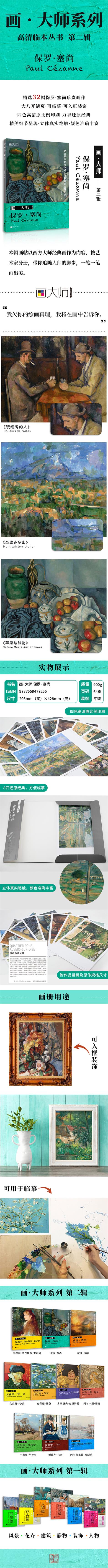 本冊藝術(shù)家為保羅·塞尚,精選《圣維克多山》《沐浴者《蘋果與靜物》《玩紙牌的人》等32幅作品,為拉近讀者與畫家的距離,本系列所挑選作品力求經(jīng)典。作品選擇內(nèi)容豐富、題材健康、色調(diào)明快、色塊清晰。從而達(dá)到受眾人群廣,從學(xué)生到美術(shù)愛好者,甚至美術(shù)培訓(xùn)機(jī)構(gòu)。裝幀形式更便于臨摹學(xué)習(xí)和室內(nèi)空間裝飾,用途廣泛。精美的封盒設(shè)計(jì)、考究的用紙以及高品質(zhì)、高清的印刷也為提升本系列畫帖的品質(zhì)的必要條件。