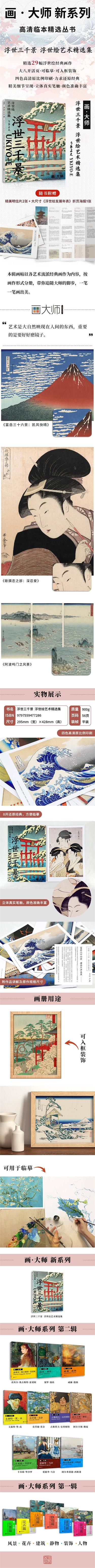 該新系列畫(huà)帖,精選了世界范圍內(nèi)各藝術(shù)流派的經(jīng)典畫(huà)作,主要以臨摹、賞飾為主。每?jī)?cè)29張精選大師代表作。深入考慮國(guó)內(nèi)讀者需求和審美習(xí)慣,規(guī)避不良題材和內(nèi)容,每?jī)?cè)作品精挑細(xì)選。每張作品輔以作者及作品扼要講解、說(shuō)明,并附原作規(guī)格尺寸,使讀者能夠更加深入地了解作者及原作,幫助讀者更準(zhǔn)確地理解作品,從而做到在理解的前提下欣賞,和更有目的地臨摹學(xué)習(xí)。本冊(cè)為浮世繪藝術(shù)精選,一本包含了29幅浮世繪珍貴畫(huà)作,《富岳三十六景:神奈川沖浪里》《東海道五十三次:日本橋》《當(dāng)時(shí)三美人》《回首美人圖》《武陽(yáng)金澤八勝夜景》……活頁(yè)散裝、方便臨習(xí),高清印刷、原作比例,是教學(xué)對(duì)話(huà),裝飾的更優(yōu)選擇。
