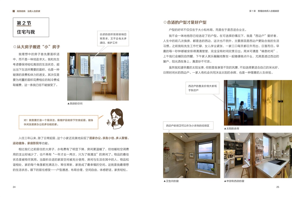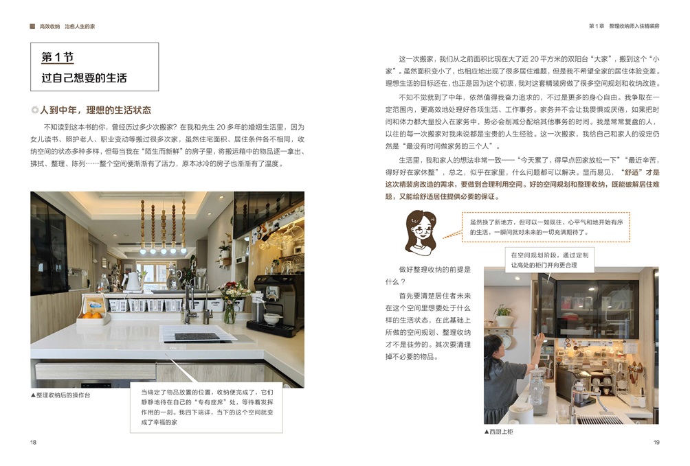 本書共分為三個章節(jié),分別介紹入住“精裝房”的前期收納策劃工作,家的十二個空間的收納方法及在這十二個空間中因為收納整理而愜懷居住的事,最后一章講在“家”的學校里如何學會自我整理收納。作者認為住宅收納,當以居住者的近幾年生活動態(tài)為基礎而規(guī)劃,全書旨在從整理收納到追求家事輕簡來達成高效生活,從而打造治愈人生的家。