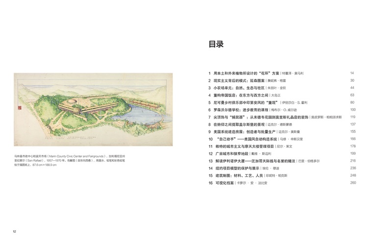 本書共有五個專題,從“自然”“文化”“建造”“城市規(guī)劃”以及“賴特檔案”五個方面對賴特的建筑理念、建造方式以及民主理想進行解讀,涉及眾多賴特的知名項目,包括流水別墅、古根海姆博物館;以及未建成的規(guī)劃,如小農(nóng)市場、廣畝城市等。許多圖紙還是初次公開,具有很高的學術價值。