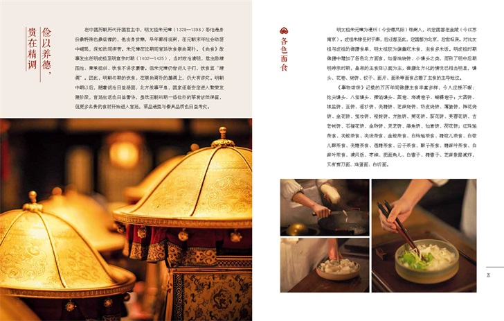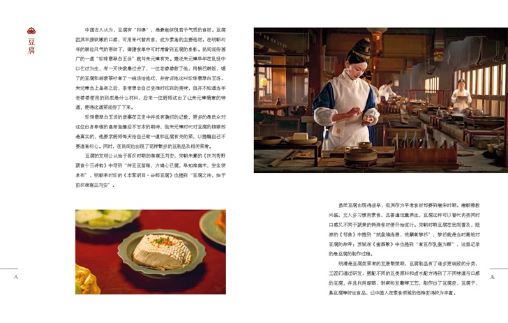 在“食”之部分,本書深入挖掘劇中千余道佳肴背后的文化內(nèi)涵,從食材的選取到烹飪技法,從歷史背景到生活哲思,展現(xiàn)了明代飲食的多樣性與豐盈意趣。書中匯聚了由非遺傳承人復(fù)刻的精美菜品,再現(xiàn)中華飲食文化形神兼?zhèn)涞乃囆g(shù)之美。