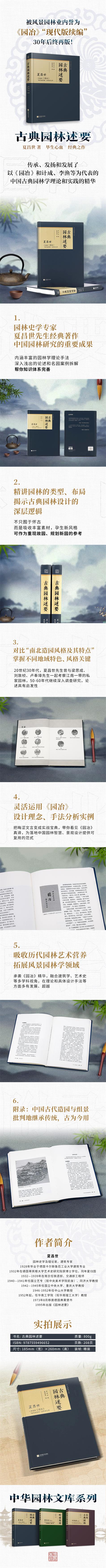 夏昌世教授于1995年出版的《園林述要》一書,被業(yè)界堪稱為《園冶》的“現(xiàn)代版續(xù)編”。本書在《園林述要》的基礎(chǔ)上重新整理,傳承、發(fā)揚(yáng)和發(fā)展了以《園冶》和計(jì)成、李漁等為代表的中國古典園林學(xué)理論和實(shí)踐的精華。