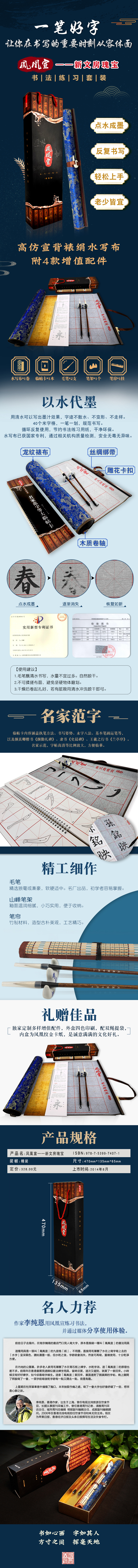 3. 省去了研墨洗墨的時(shí)間,不用擔(dān)心墨汁污染衣物,不用擔(dān)心購買宣紙的費(fèi)用。打破傳統(tǒng)書法的條件和環(huán)境局限性,便攜式設(shè)計(jì),可隨時(shí)隨地練書法。