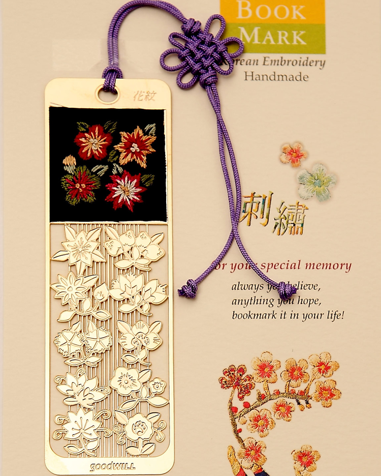 韓國Goodwill書簽采用24K鍍金,造型獨(dú)特多變,刺繡、鏤空打造,通透細(xì)致,薄如蟬翼,精細(xì)質(zhì)感?;ā⑷~、昆蟲等鮮活的姿態(tài)與生動(dòng)的顏色被精美地定格在書簽里,讓您在書香四溢中呼吸自然的氣息,陪你在歲月中長久的感動(dòng)。