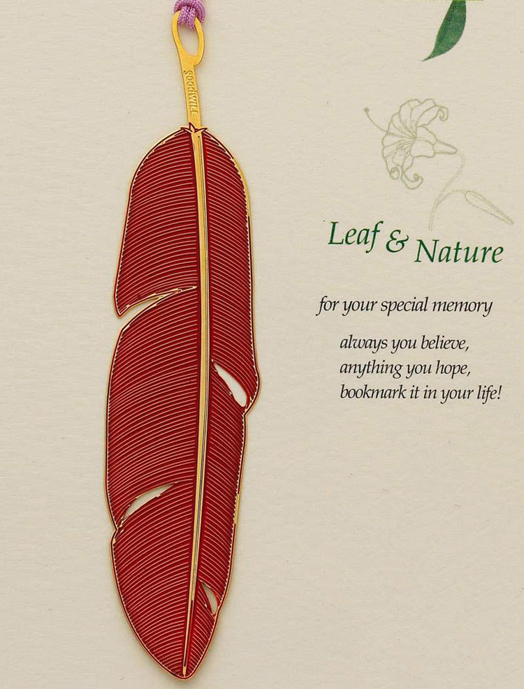 韓國Goodwill書簽采用24K鍍金,造型獨(dú)特多變,刺繡、鏤空打造,通透細(xì)致,薄如蟬翼,精細(xì)質(zhì)感?;ā⑷~、昆蟲等鮮活的姿態(tài)與生動(dòng)的顏色被精美地定格在書簽里,讓您在書香四溢中呼吸自然的氣息,陪你在歲月中長久的感動(dòng)。
