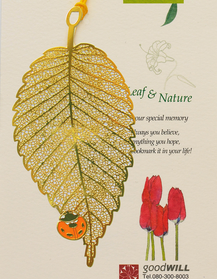 韓國(guó)Goodwill書(shū)簽采用24K鍍金,造型獨(dú)特多變,刺繡、鏤空打造,通透細(xì)致,薄如蟬翼,精細(xì)質(zhì)感。花、葉、昆蟲(chóng)等鮮活的姿態(tài)與生動(dòng)的顏色被精美地定格在書(shū)簽里,讓您在書(shū)香四溢中呼吸自然的氣息,陪你在歲月中長(zhǎng)久的感動(dòng)。