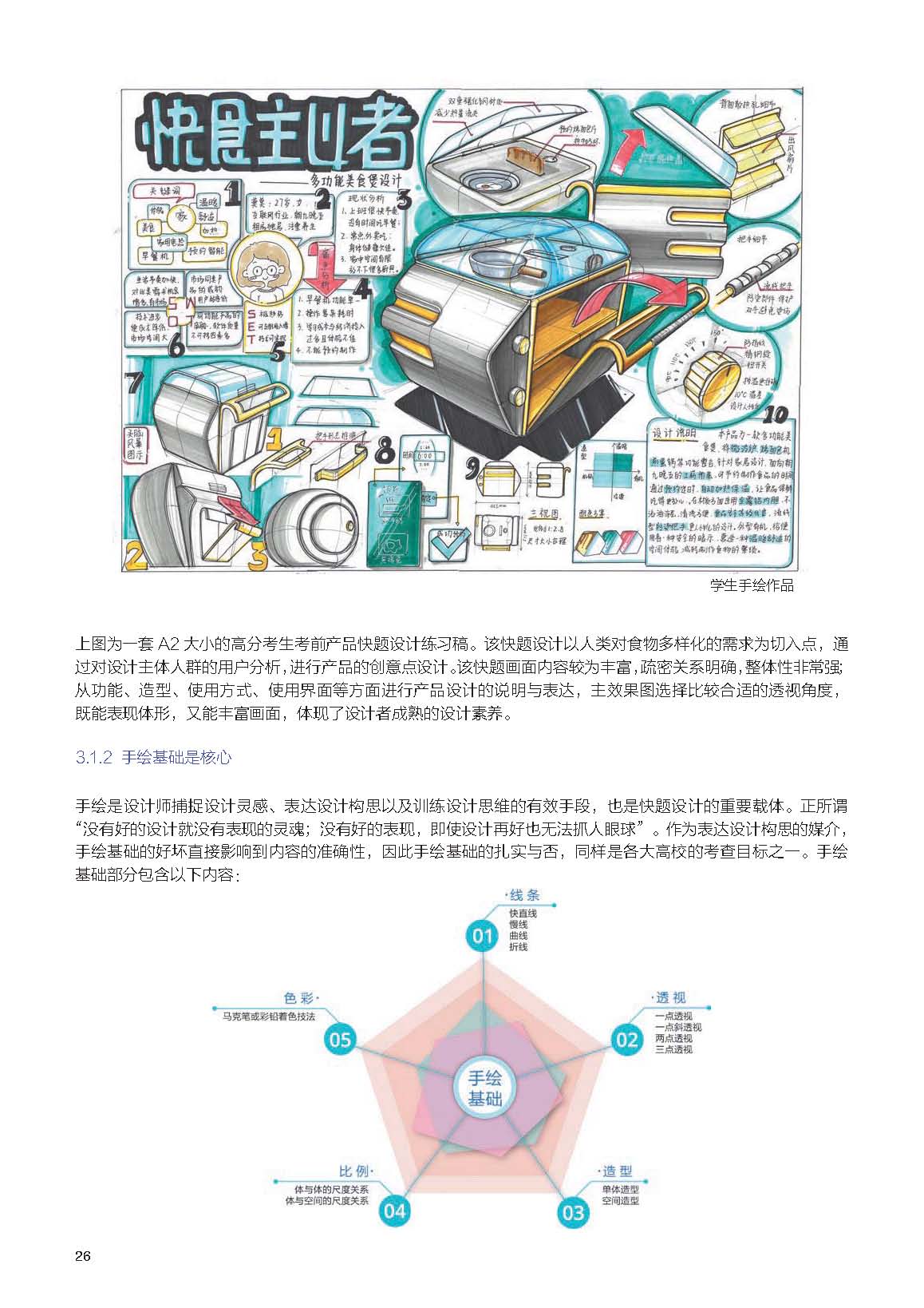 傳統(tǒng)手繪范例書籍結(jié)構(gòu),結(jié)合“設(shè)計考研高分攻略”的設(shè)計思維導(dǎo)向特點(diǎn),以更有針對性的