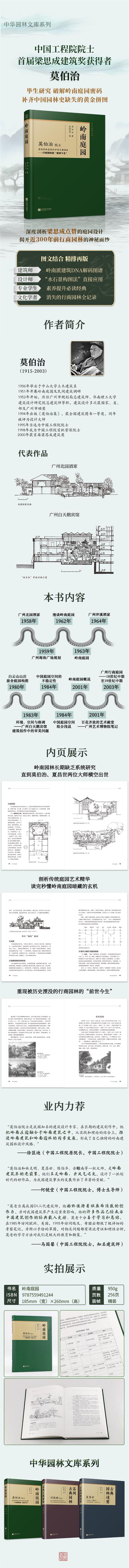 1. 是中國(guó)工程院首批資*深院士、設(shè)計(jì)大*師、首屆梁思成建筑獎(jiǎng)獲得者莫伯治先生自1958-2003年研究中國(guó)傳統(tǒng)園林的經(jīng)典著作。書中有對(duì)古典園林和當(dāng)代嶺南庭園發(fā)展的論述分析,也有其本人創(chuàng)作實(shí)踐與思維的回顧與總結(jié),是作者幾十年創(chuàng)作實(shí)踐和理論探索的重要成果。