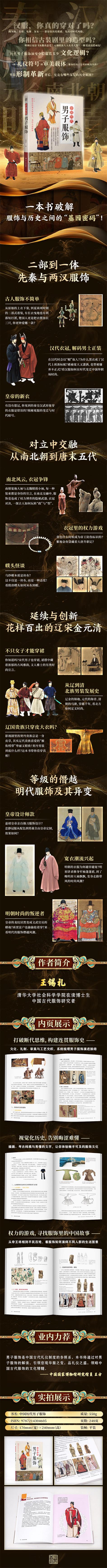 本書以服飾結構演變?yōu)槊}絡,系統(tǒng)梳理先秦到明清的男子服飾。從先秦二部式服飾的禮制初現,到兩漢深衣的普及與冠制規(guī)范;從南北朝胡漢服飾的交融碰撞,到唐宋圓領袍與幞頭的形制革新,再至明清補服、馬褂的等級象征,完整呈現中國古代男性服飾的發(fā)展軌跡。